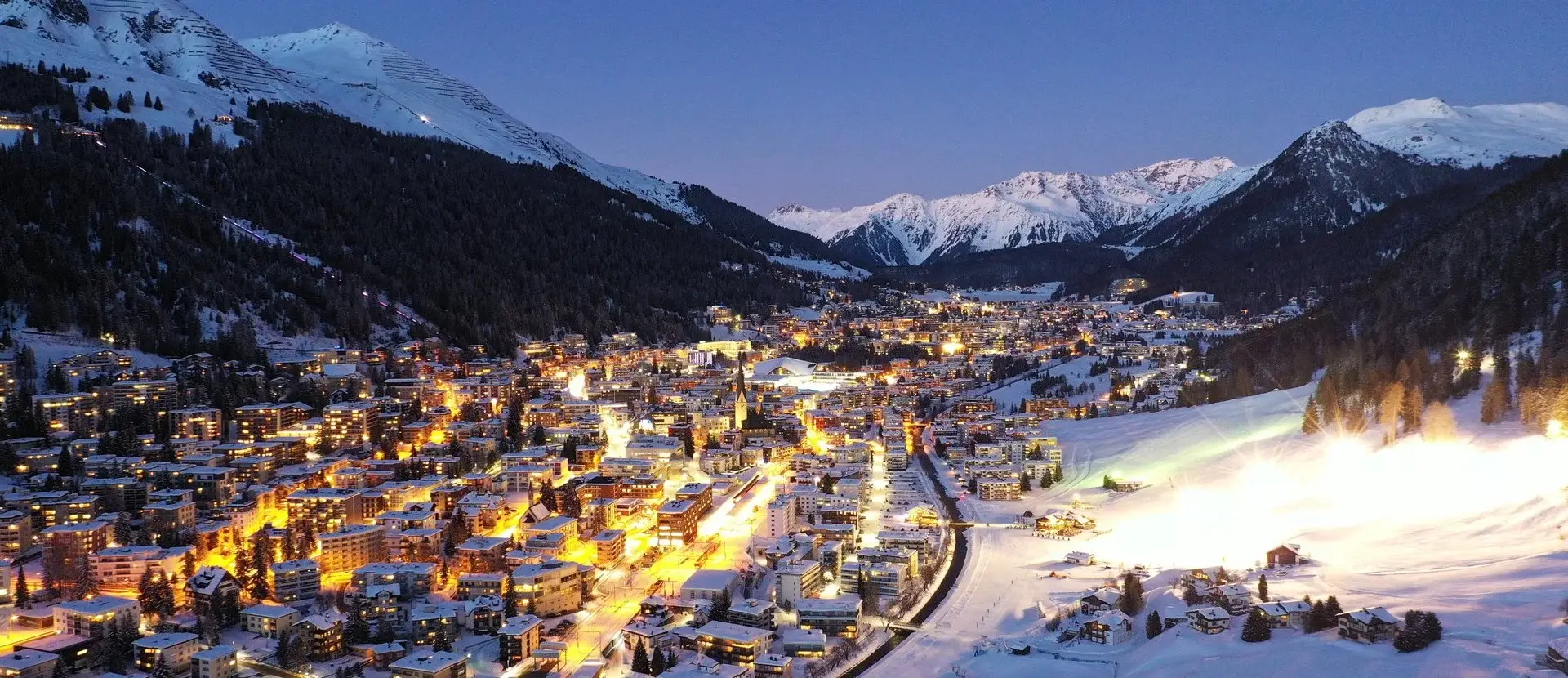 Possivelmente um dos atrativos mais populares desta estância suíça são as atividades noturnas, onde é possível esquiar, andar de trenó e patinar no gelo nas montanhas iluminadas! Outras experiências inesquecíveis incluem a construção de iglus para famílias e a prática de esqui ao nascer do sol para aqueles que desejam fazer as primeiras descidas. Para completar tudo isto, Davos tem uma animada vida noturna com diversos bares elegantes, cafés acolhedores e restaurantes para todos os gostos e carteiras. Desde 1971 que Davos se tornou o centro do mundo devido á reunião anual do Fórum Econômico Mundial, durante uma semana em Janeiro.